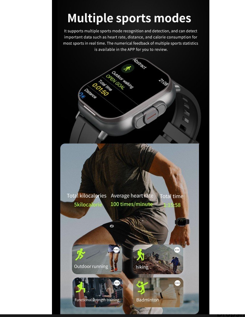 Square Touch Screen Smart Watch – A modern, sleek wearable that combines everyday style with essential smart features like call reminders, message notifications, sleep tracking, and world time.